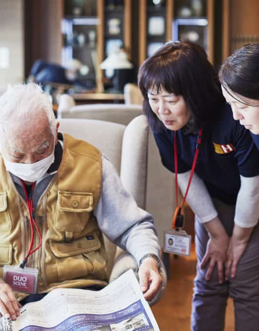 また、デュオセーヌにはコンシェルジュが24時間常駐していますので、リルセーヌの介護スタッフとも情報共有し、ご入居者のケアを行っています。