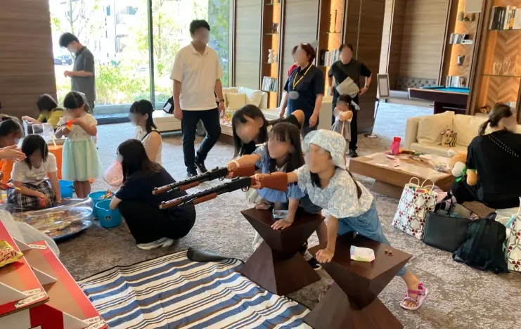 こちらのマンションはまだ入居から1年未満の為、住人さん同士のつながりを少しずつ作っていっているところです。今回は、夏の終わりに子どもたちの思い出に残るイベントを実施して、子どもたちやパパ・ママの交流を深めようと企画されました。