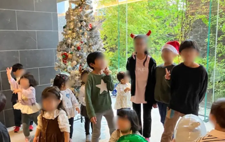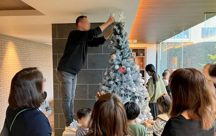 お子さんをはじめ、たくさんの住人さんが参加して、オーナメントを飾り付け。とってもすてきなツリーが出来上がりました!