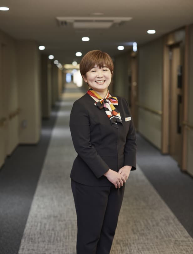 以前は有料老人ホームで介護と事務の仕事をしていました。転職を考えたとき、家族との時間を大切にしたかったので、昼間の時間が空き、生活にゆとりをもたらす夜勤の仕事を検討。しかし前職と同じような有料老人ホームなど介護の現場は、自分の年齢や今後のことを考えると負担が大きく、躊躇していました。そんなとき目にとまったのが、デュオセーヌ国立の夜勤コンシェルジュの求人情報でした。初めて介護施設とは違うシニア向け分譲マンションという新しい形態を知ったのもこのとき。「こんな仕事があるんだ」と目の前が開けましたね。しかもオープンからの募集だったので、一から立ち上げていくところに携わってみたいという想いもあり、応募をしました。